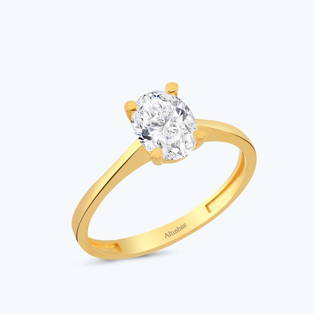 22 Ayar Altın Oval Tektaş Yüzük