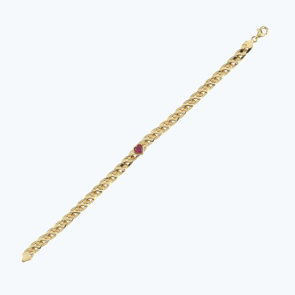 Altın Kırmızı Kalpli Zincir Bileklik