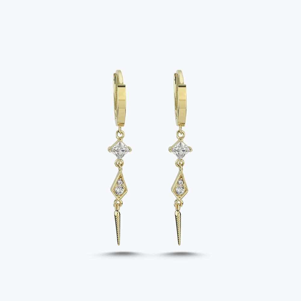 Altın Sallantılı Taşlı Halka Küpe