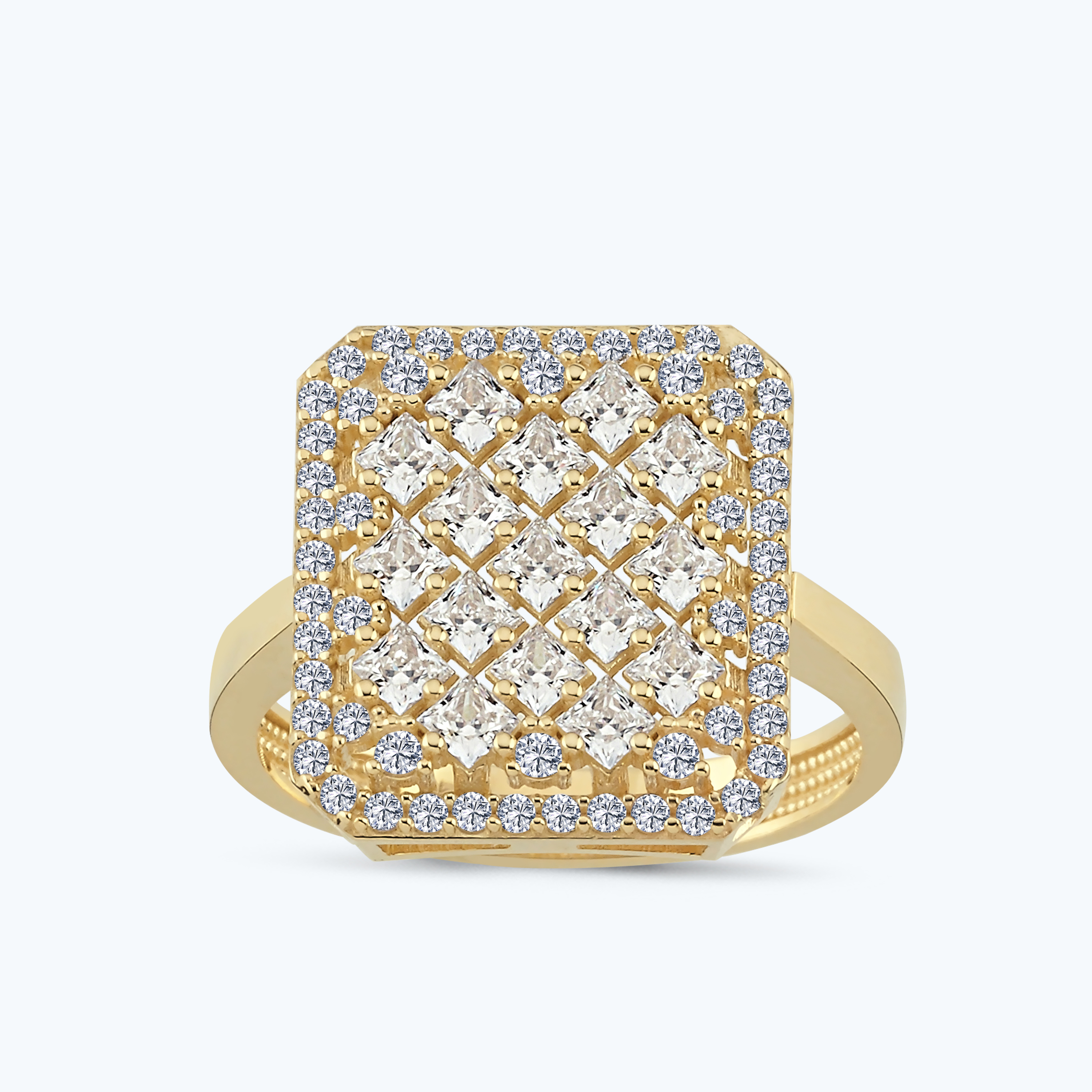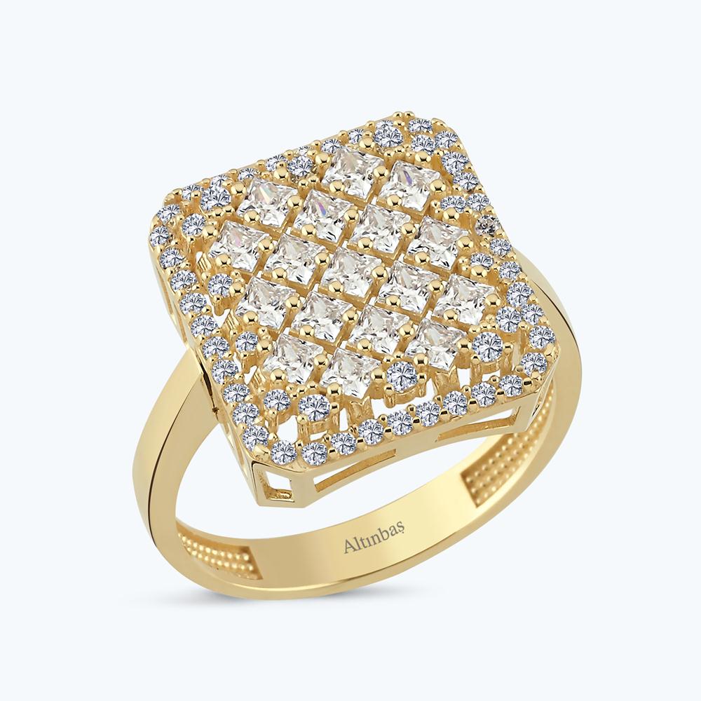 Altın Taşlı Kare Yüzük