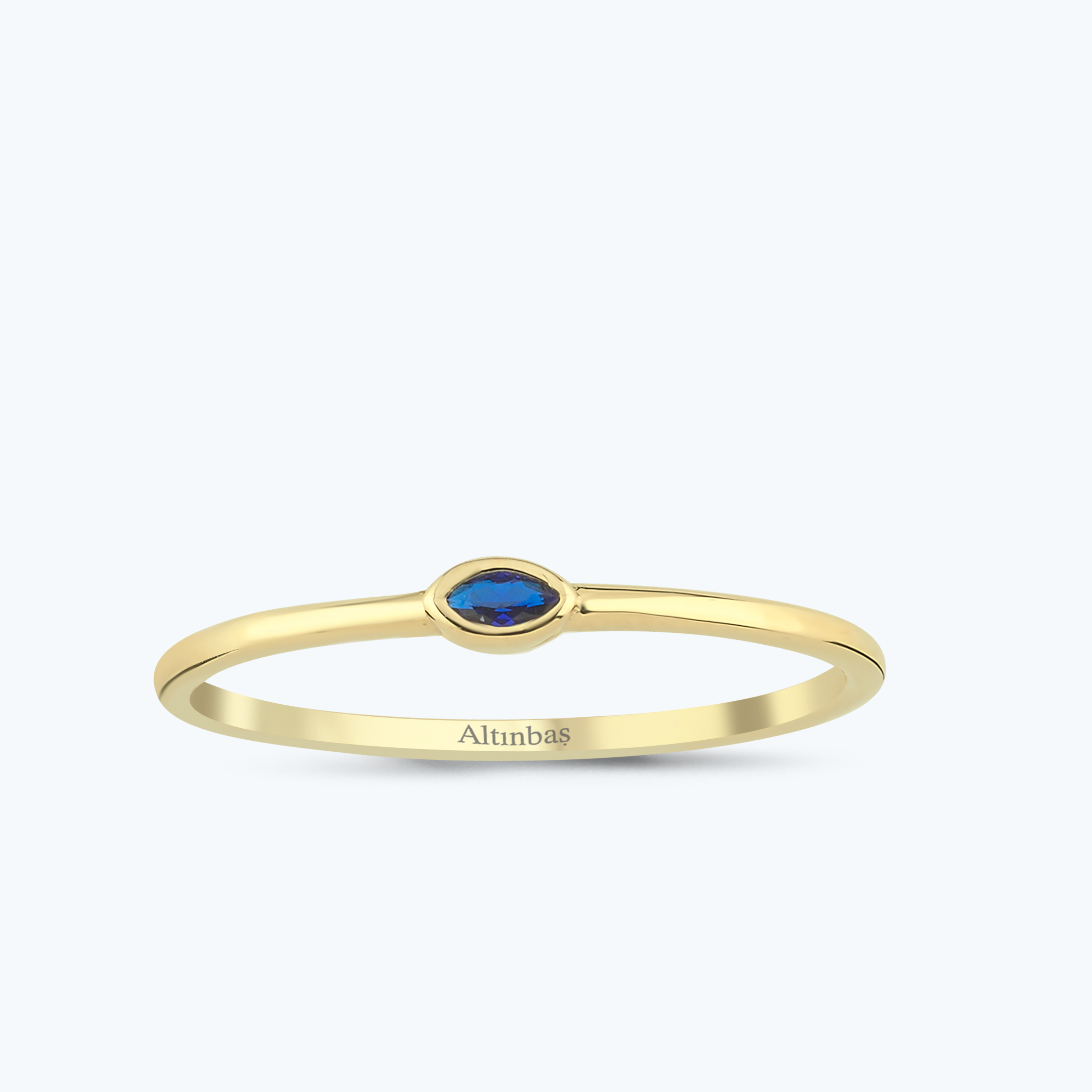 Lacivert Taşlı Altın Markiz Yüzük