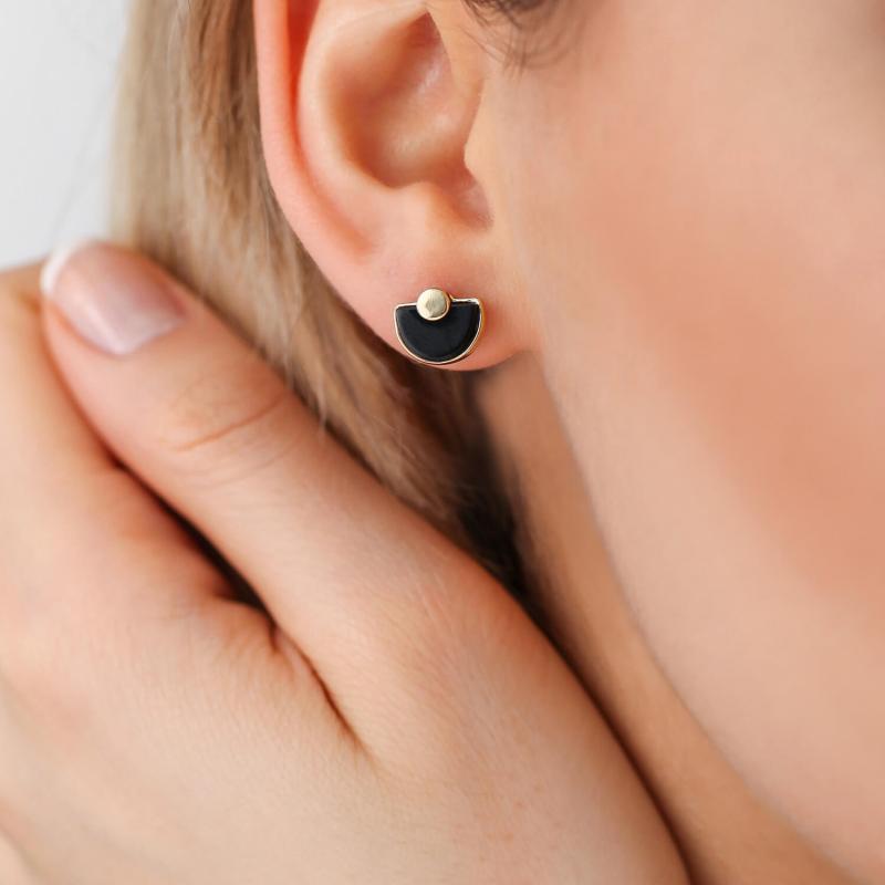 Oniks Taşlı Altın Küpe