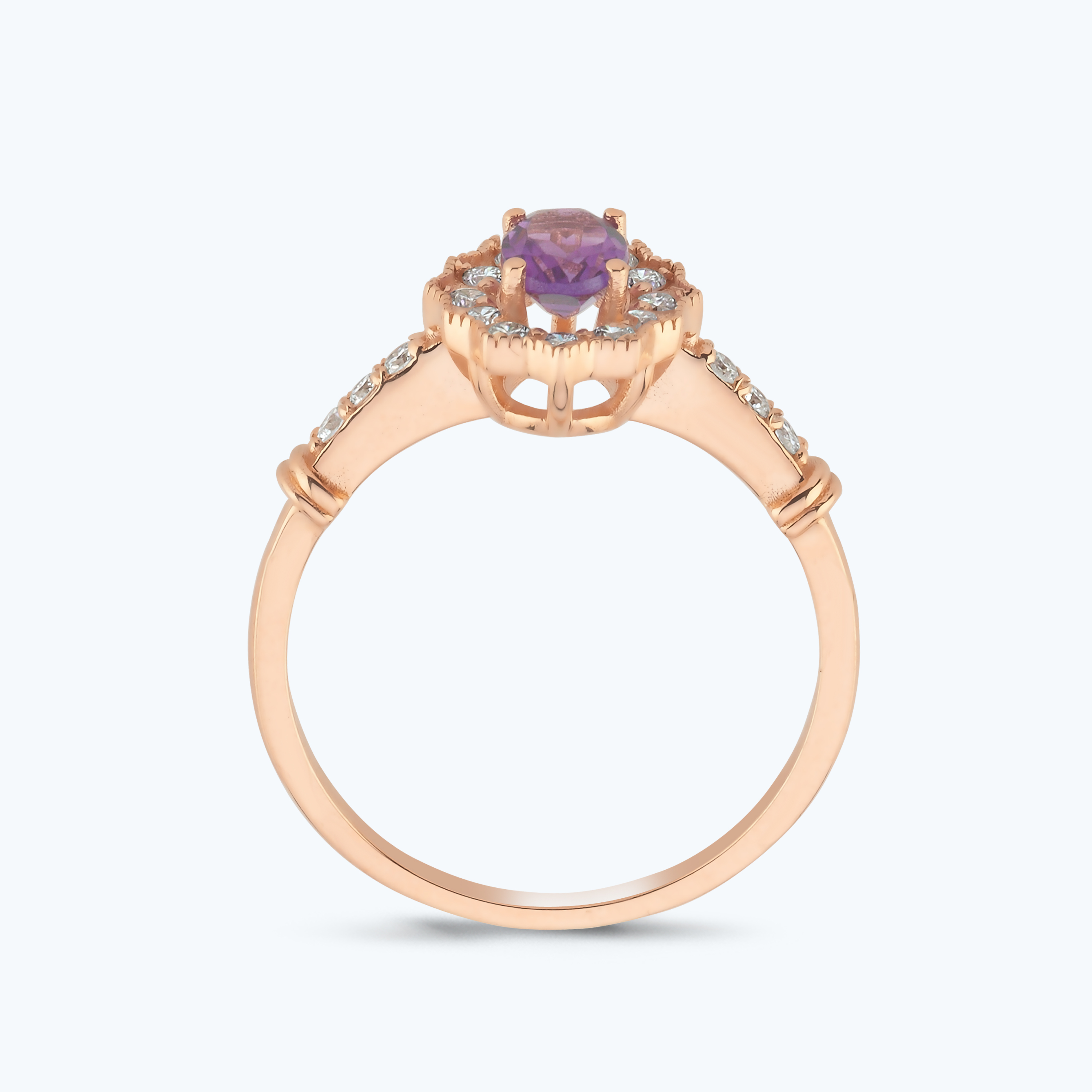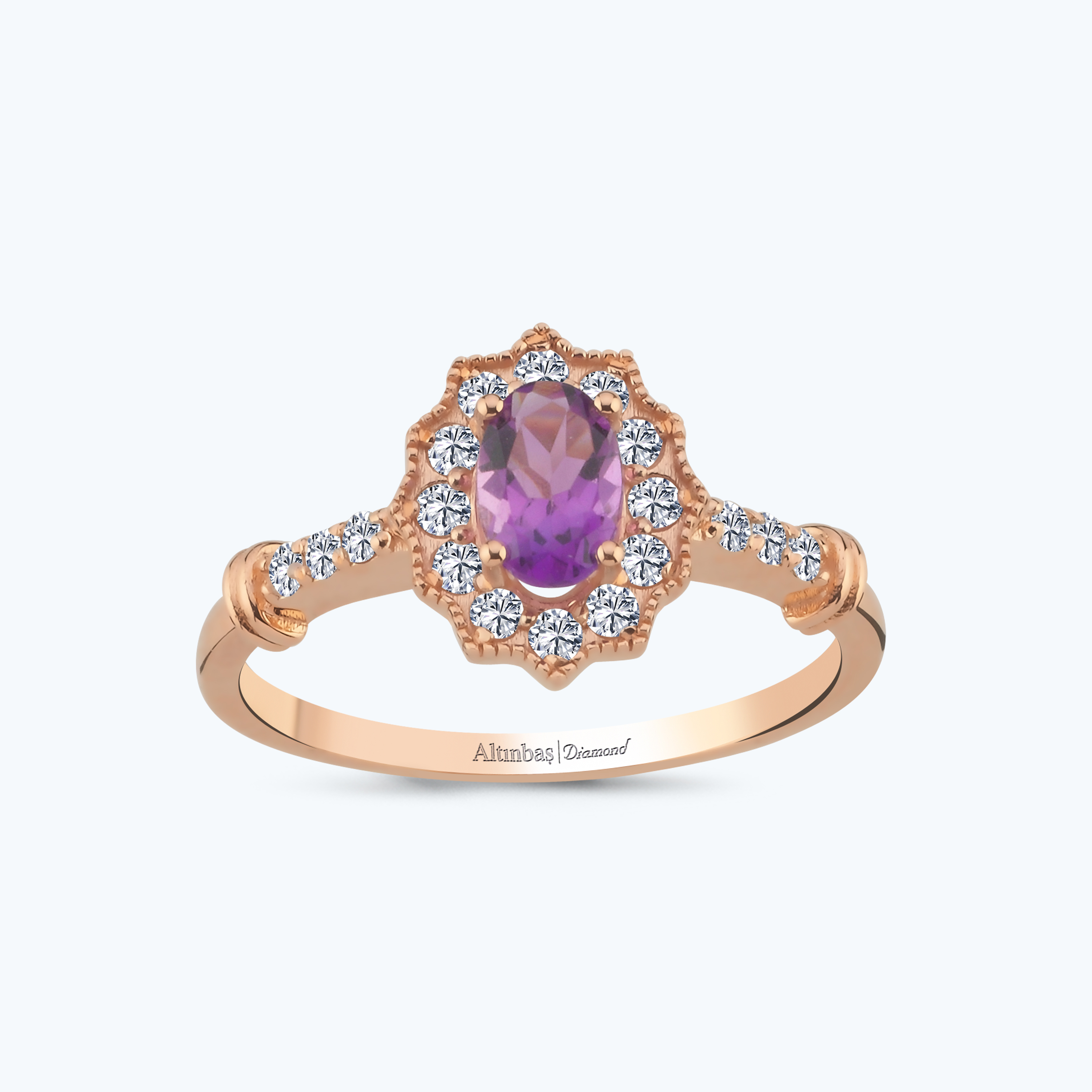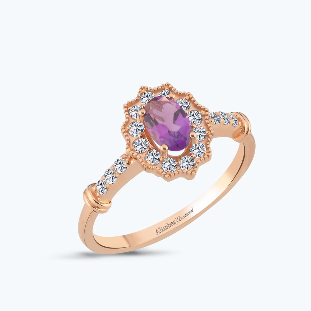 0.25 Karat Pırlanta Ametist Oval Yüzük