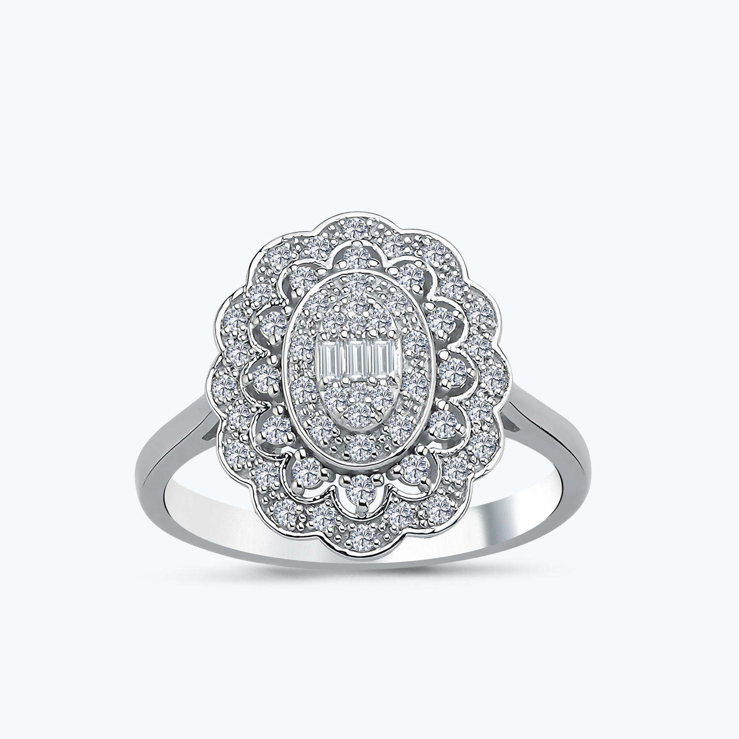 0.36 Karat Pırlanta Baget Taşlı Çiçek Yüzük