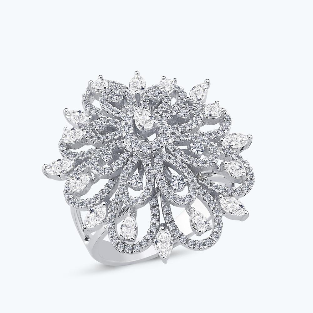 1.47 Karat Pırlanta Damla Taşlı Çiçek Yüzük