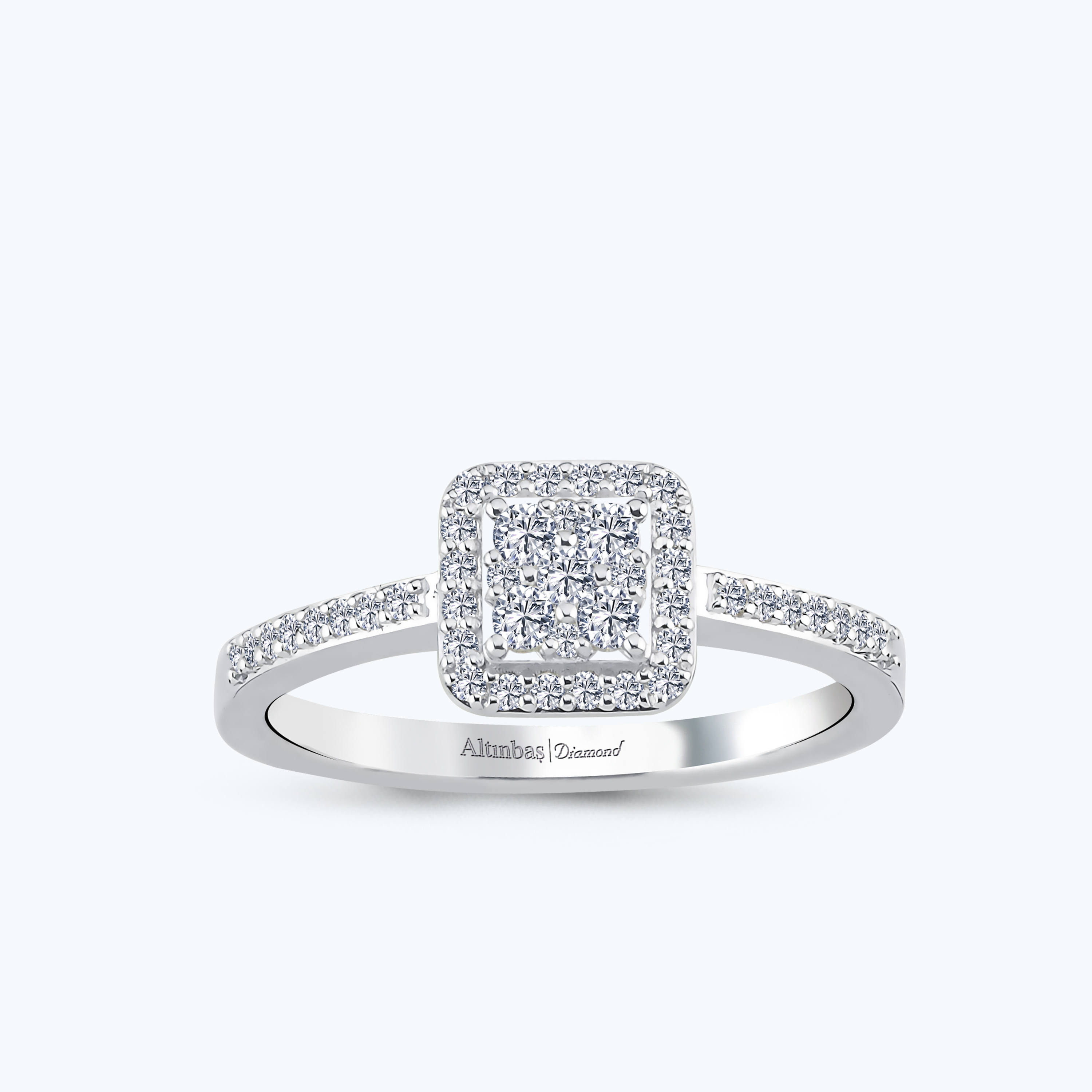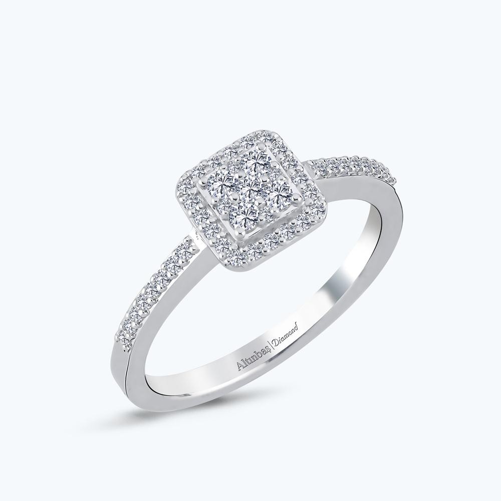 0.28 Karat Pırlanta Kolları Taşlı Kare Yüzük