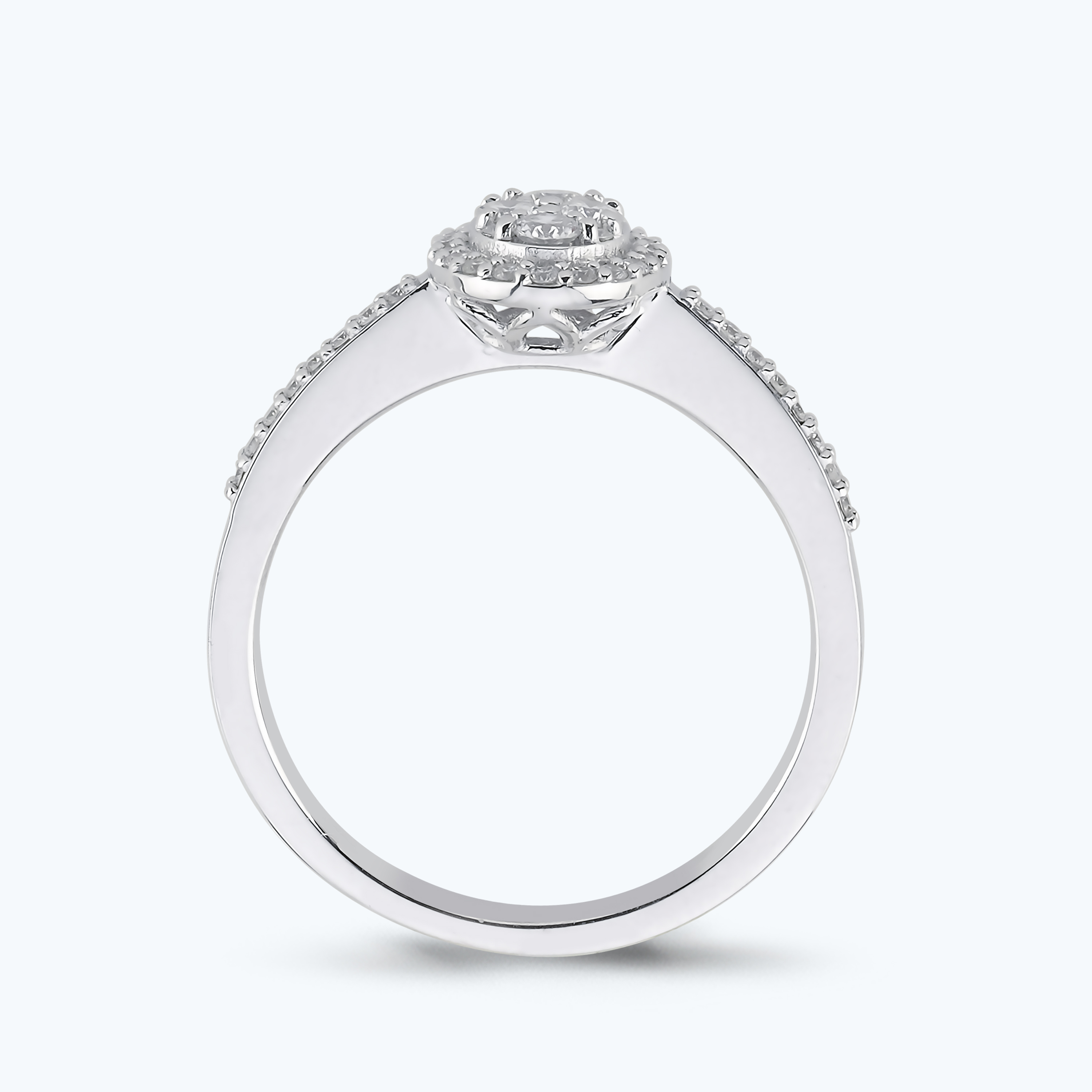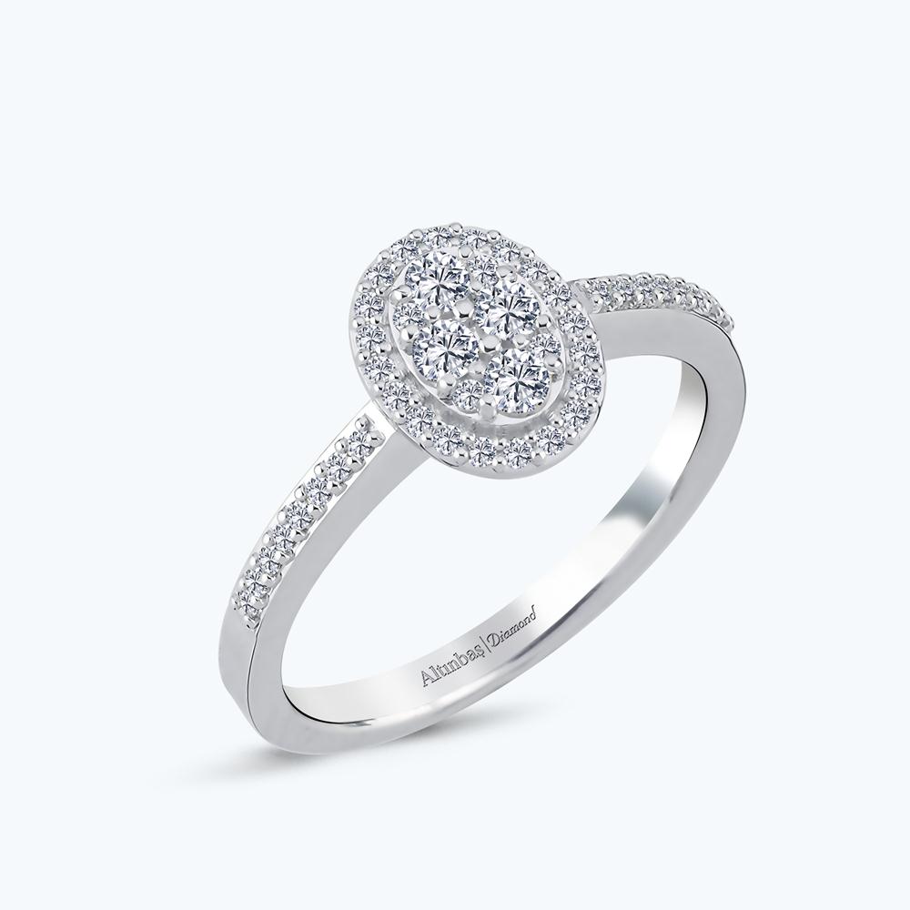0.32 Karat Pırlanta Kolları Taşlı Oval Yüzük
