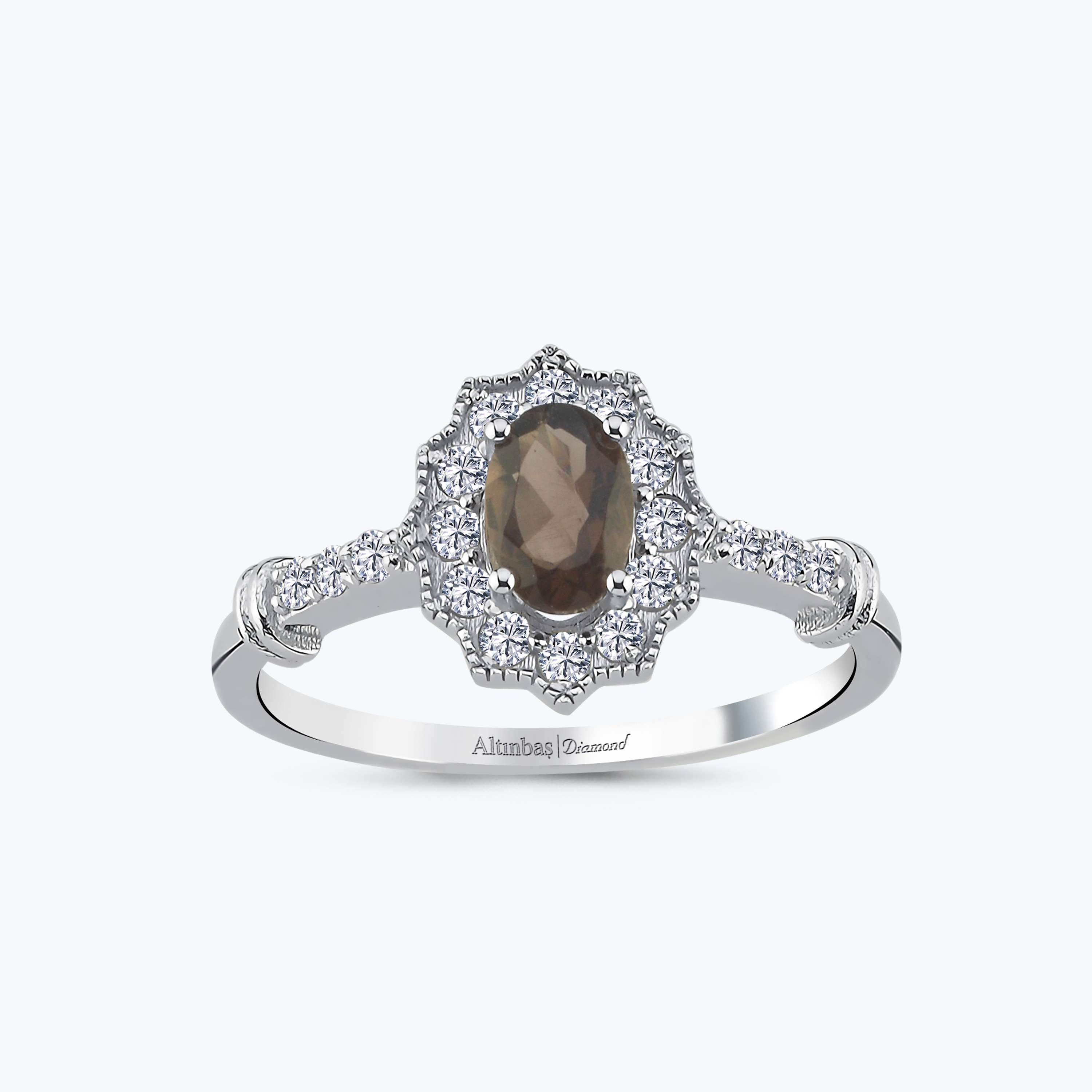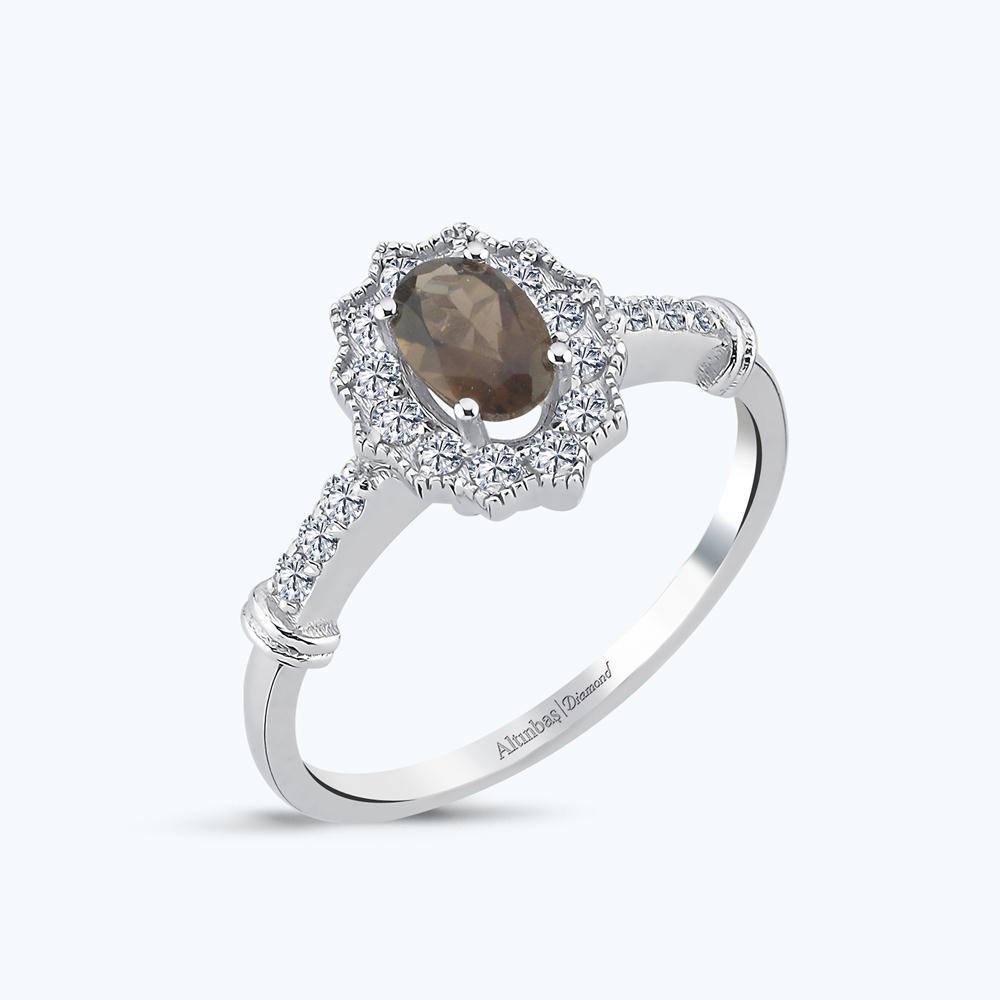 0.25 Karat Pırlanta Kuvars Taşlı Oval Yüzük