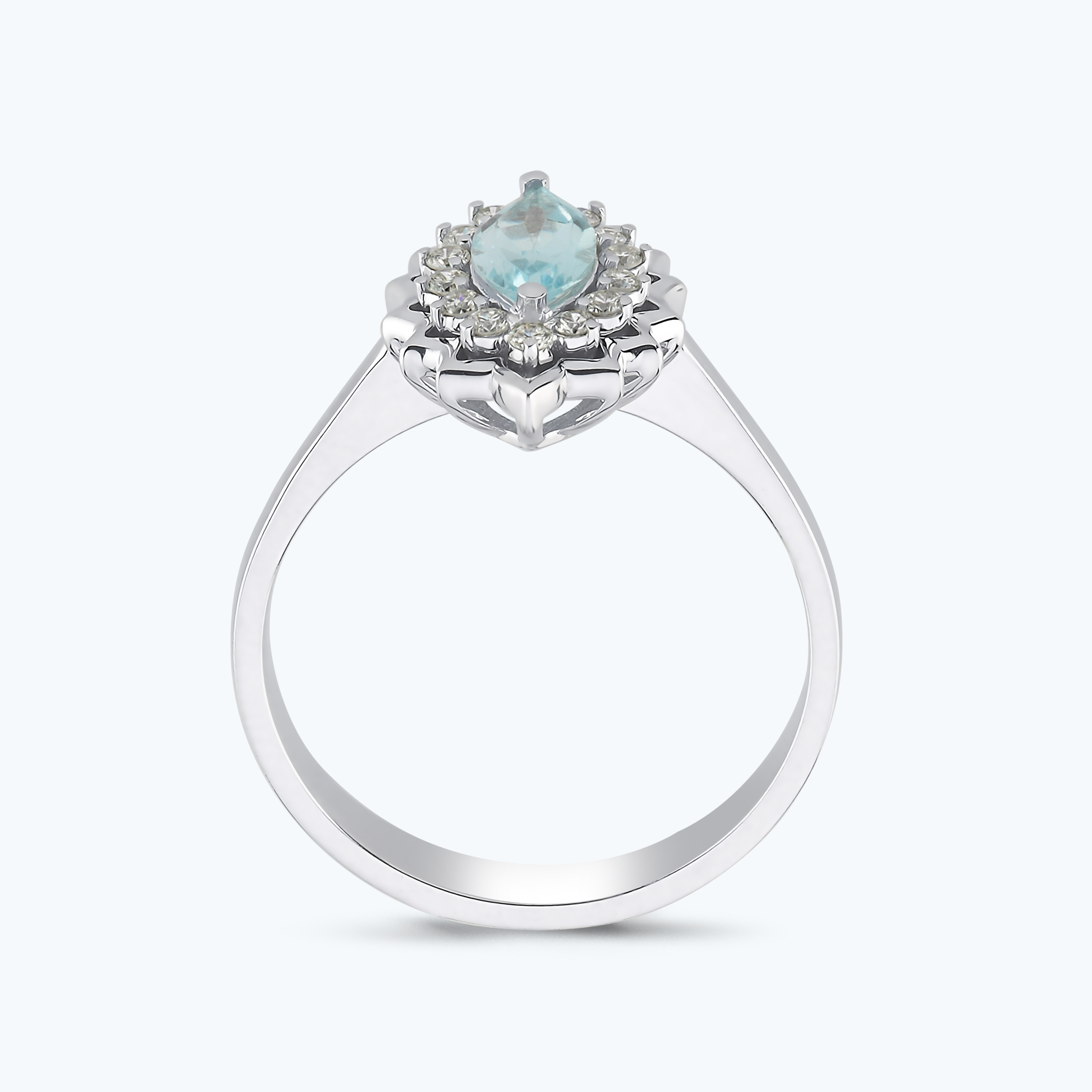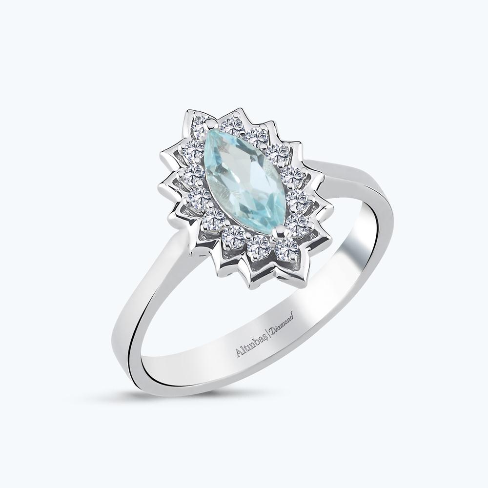 0.17 Karat Pırlanta Mavi Topaz Markiz Yüzük