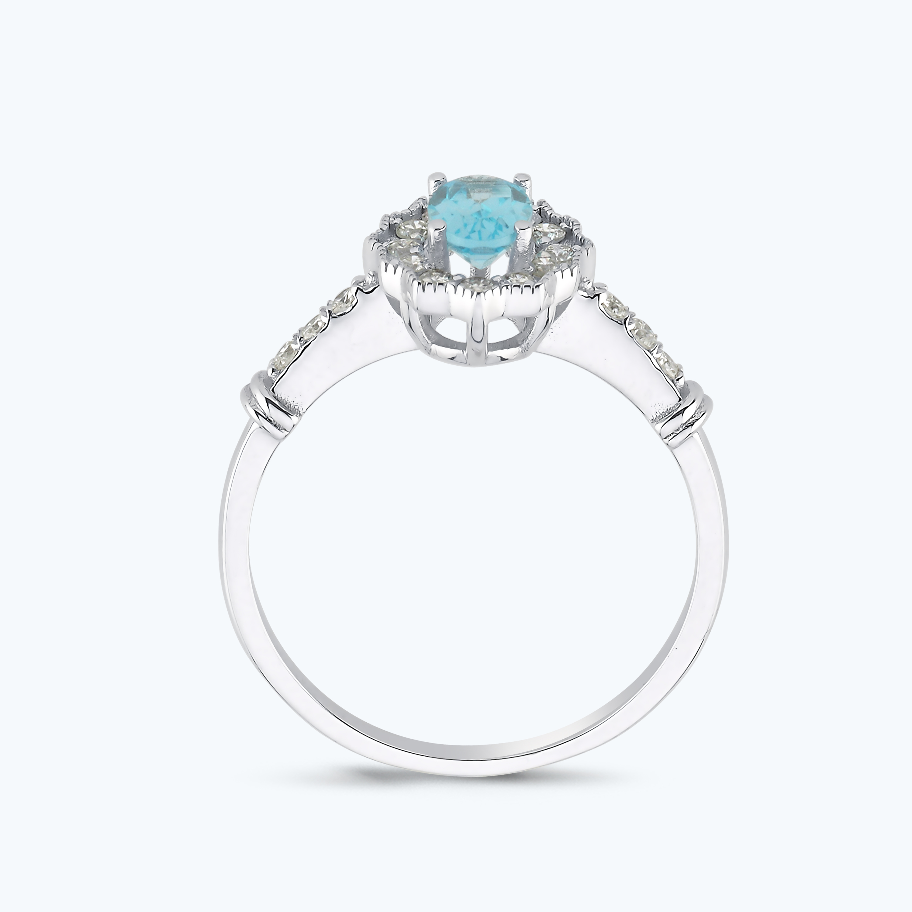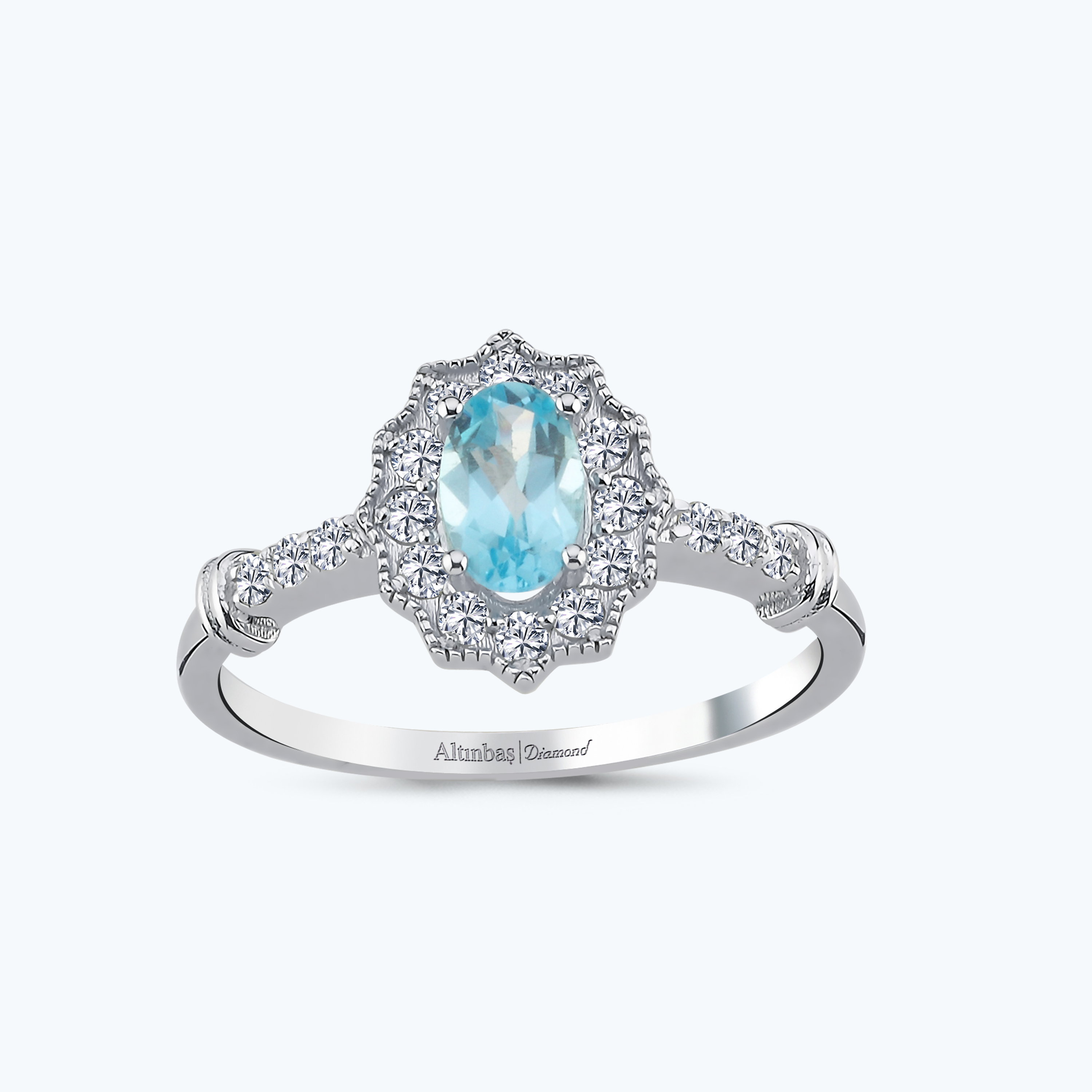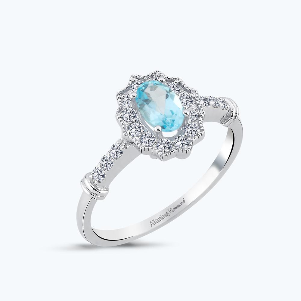 0.25 Karat Pırlanta Mavi Topaz Oval Yüzük