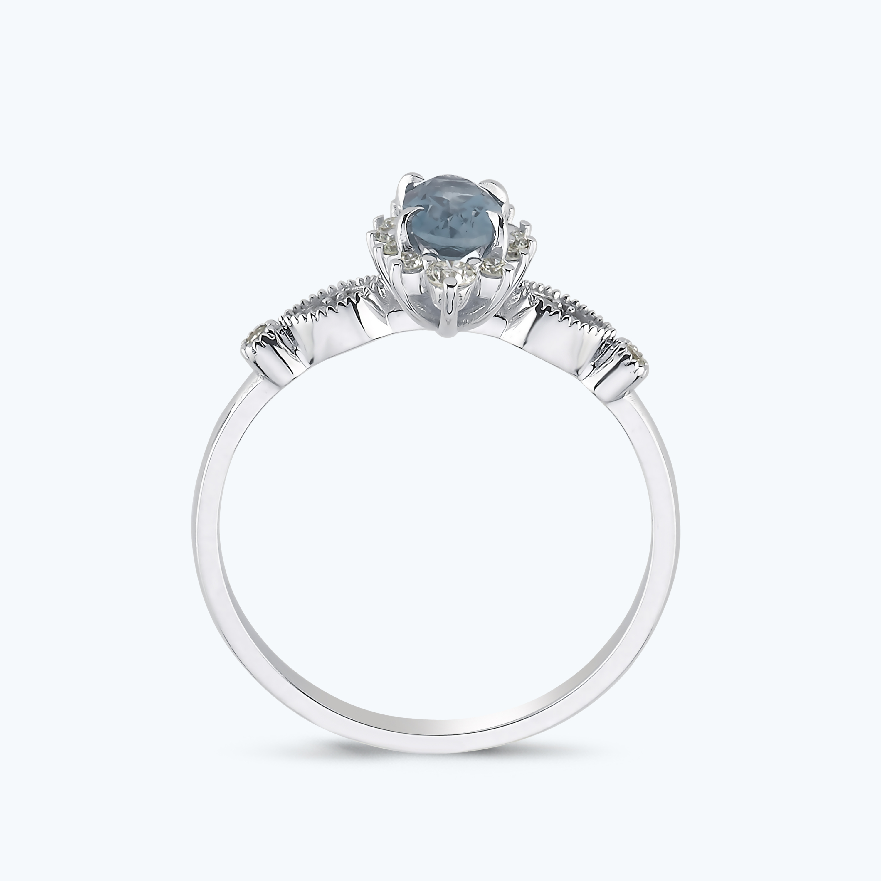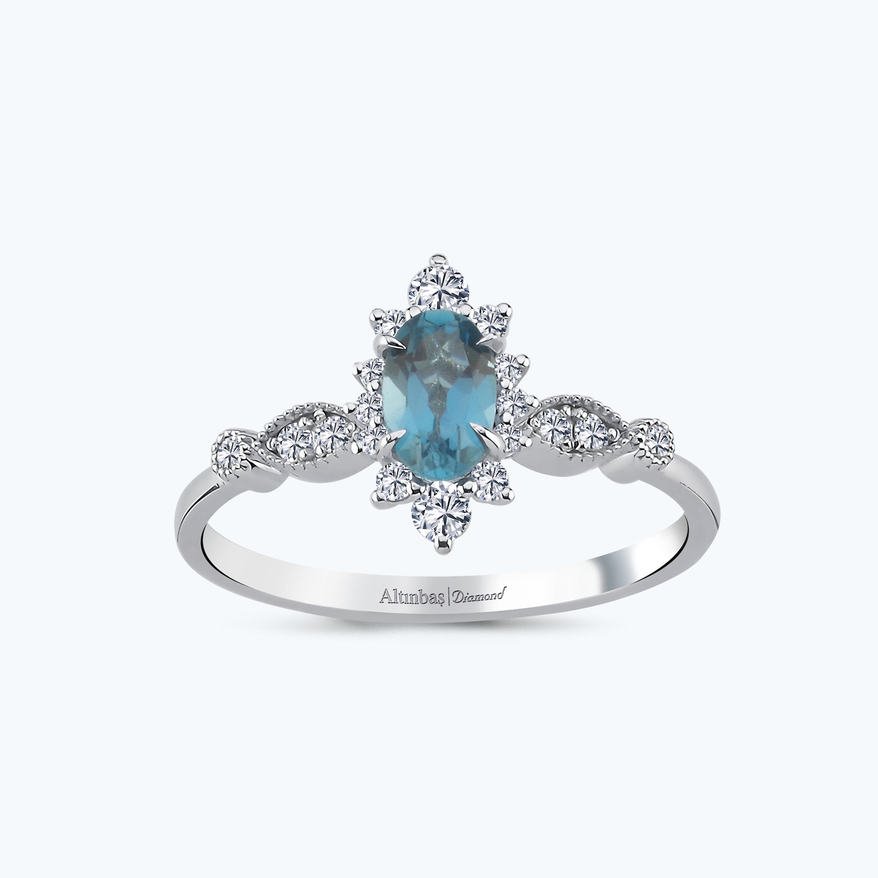 0.20 Karat Pırlanta Mavi Topaz Oval Yüzük