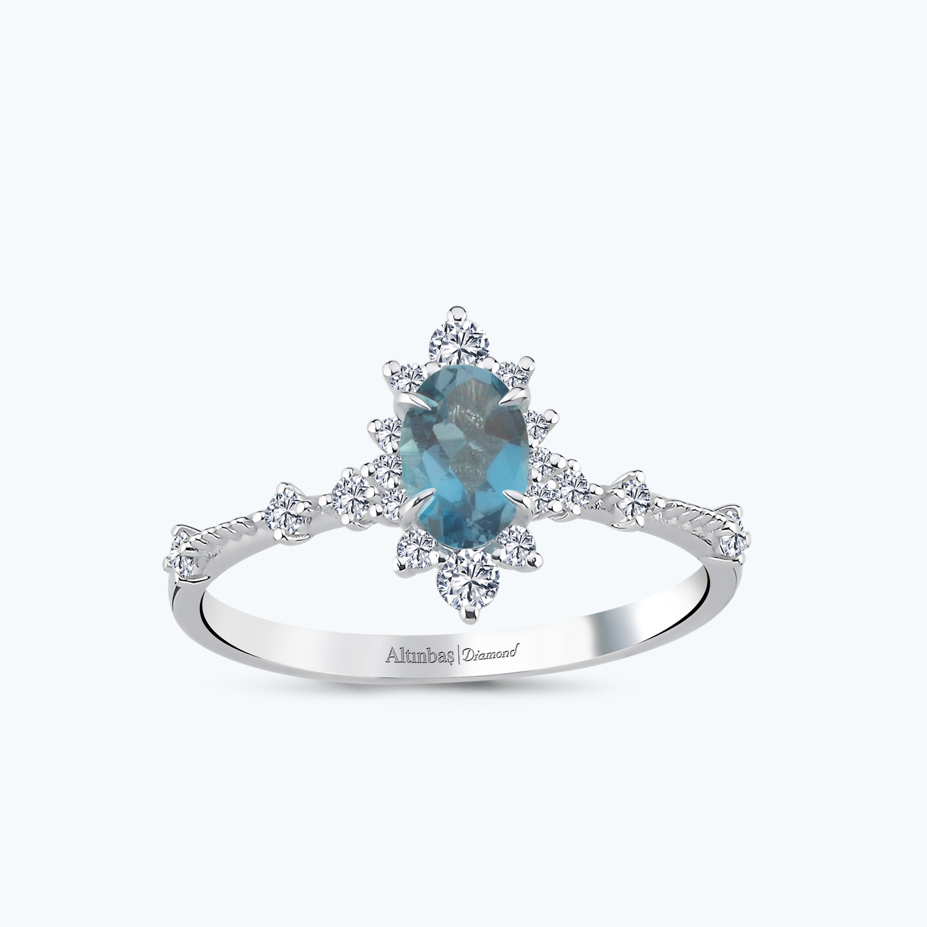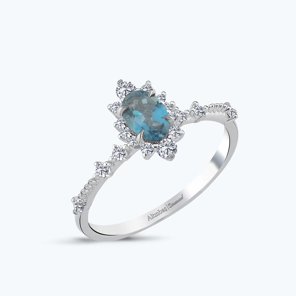 0.20 Karat Pırlanta Mavi Topaz Oval Yüzük