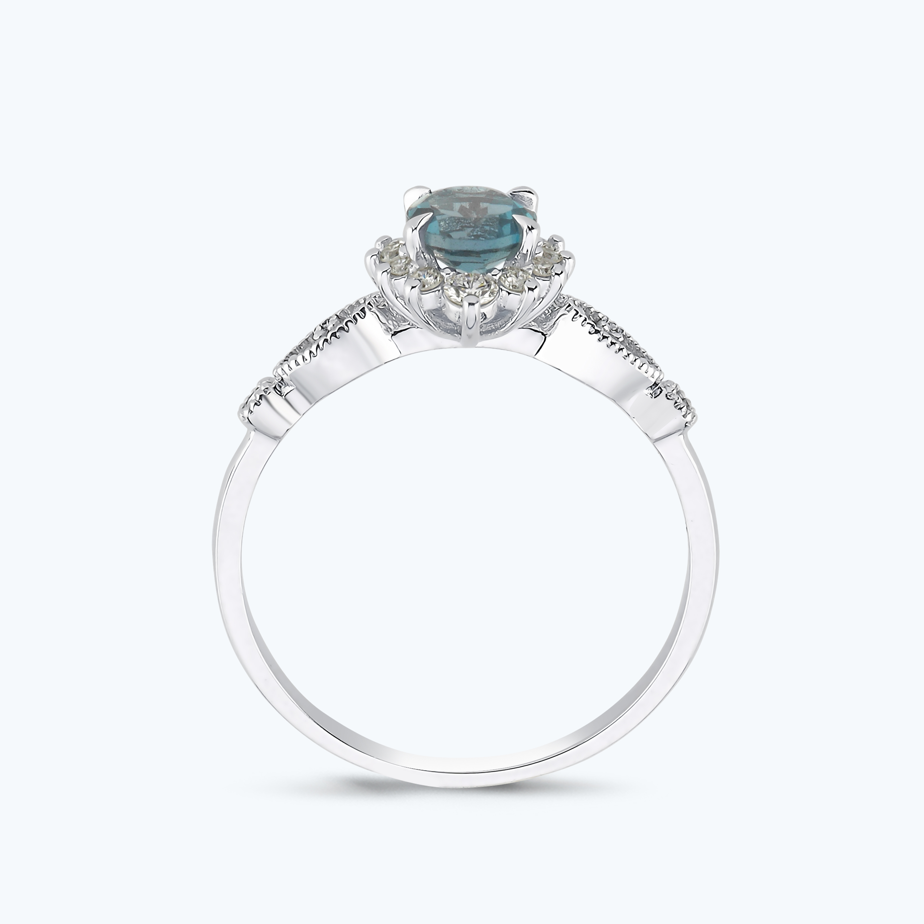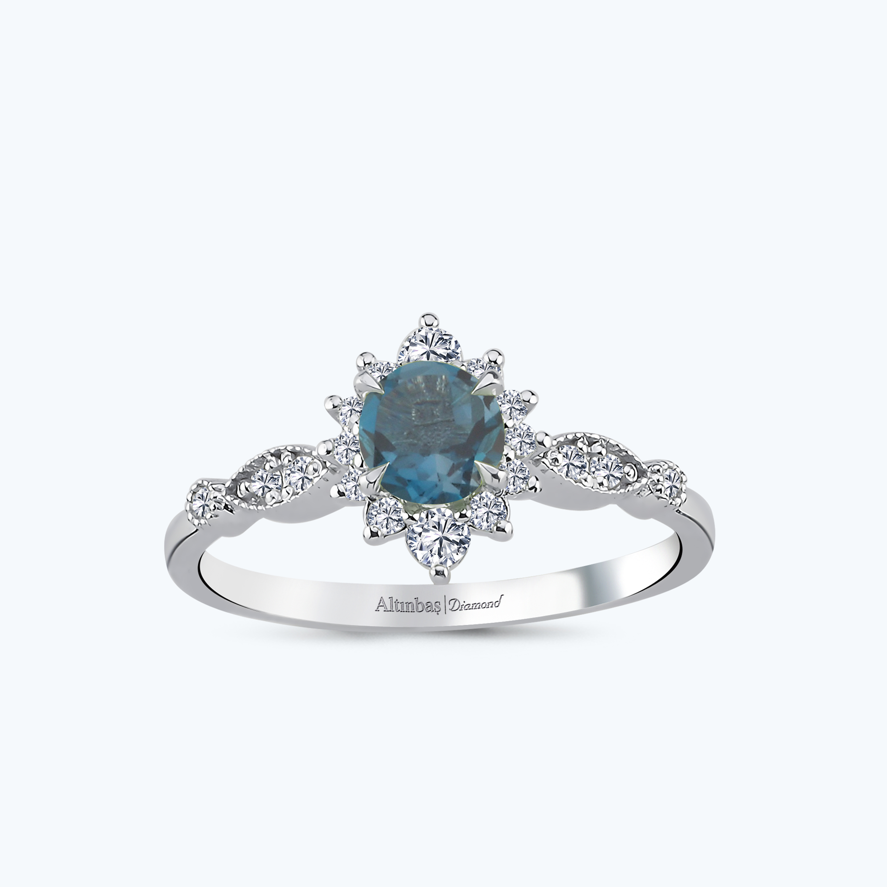 0.20 Karat Pırlanta Mavi Topaz Vintage Yüzük