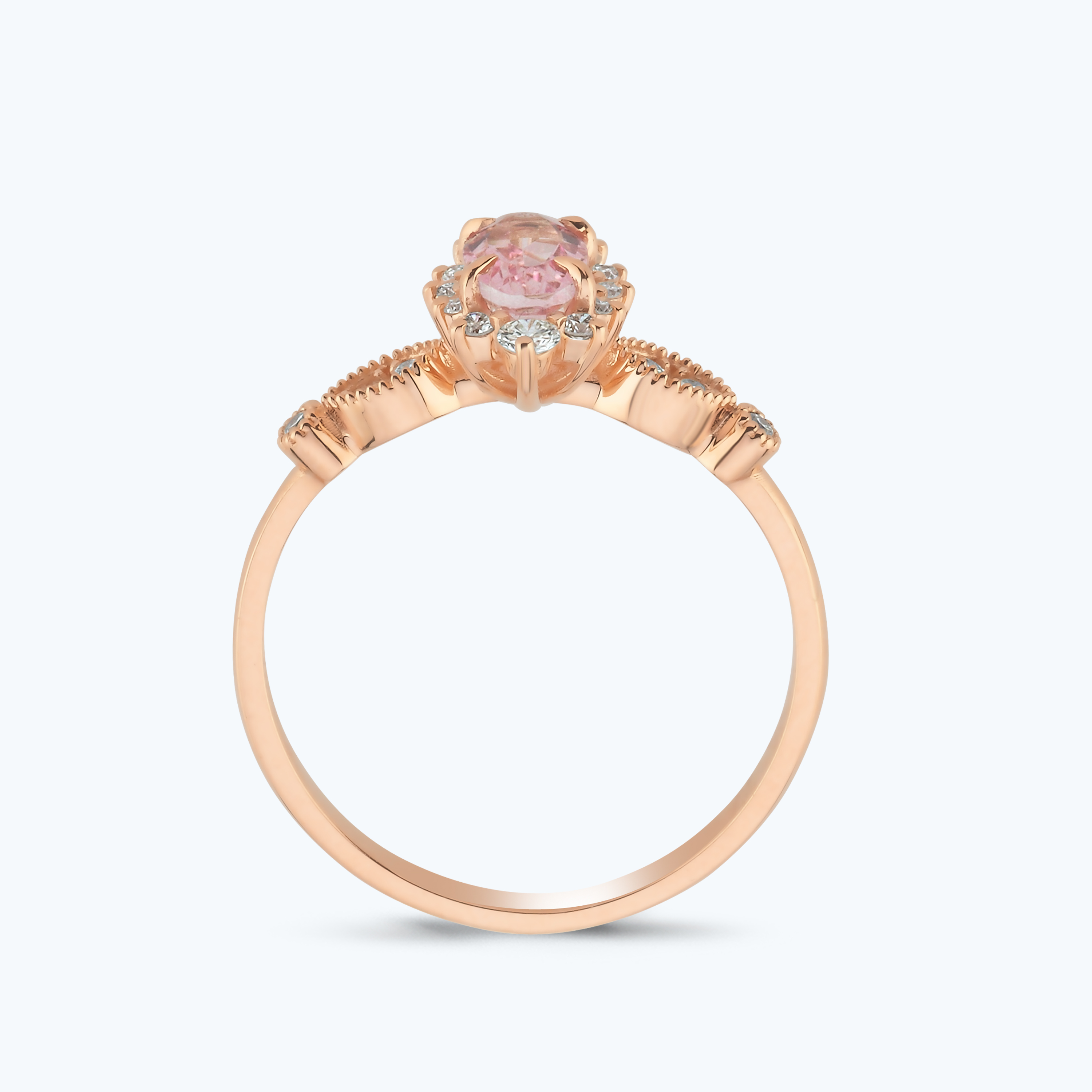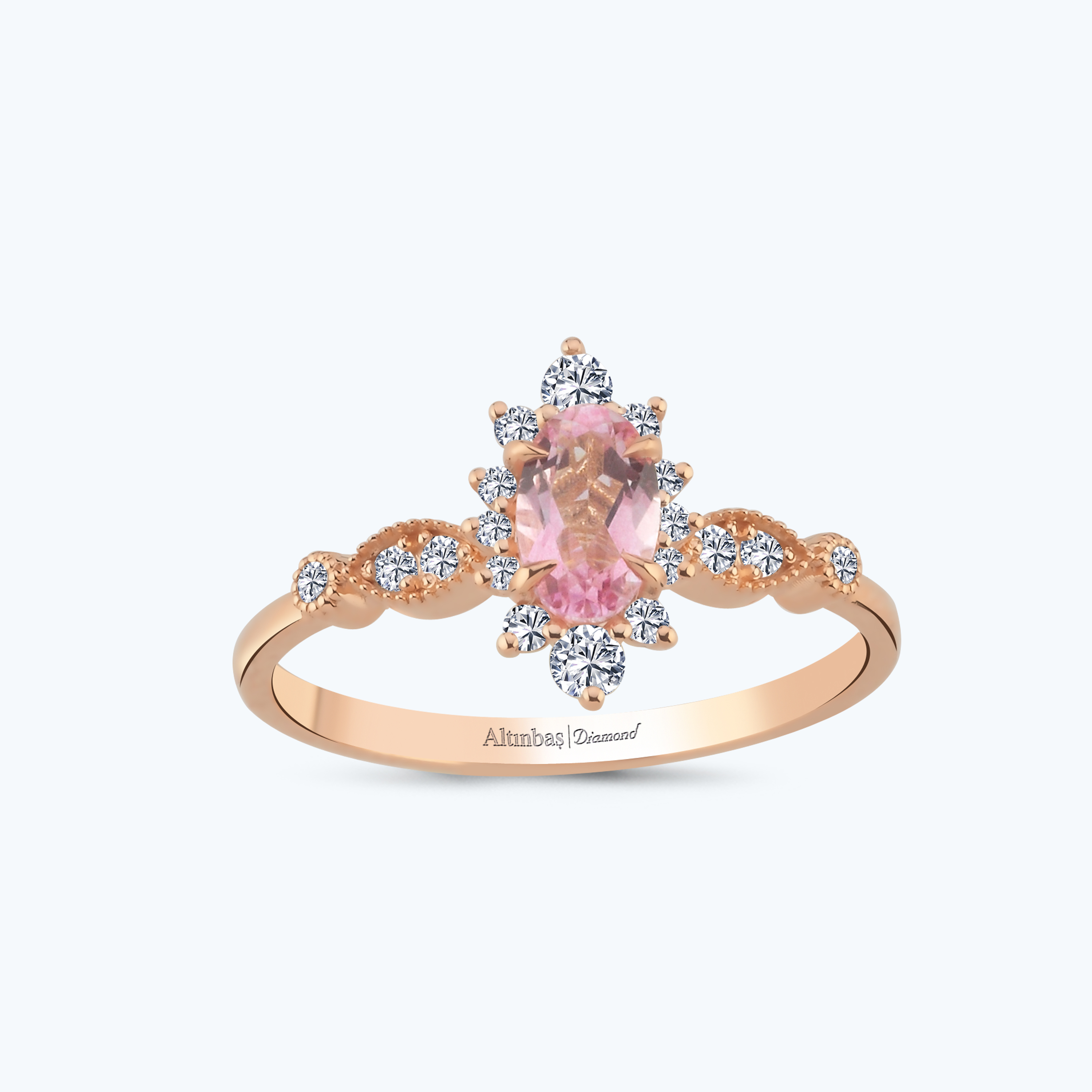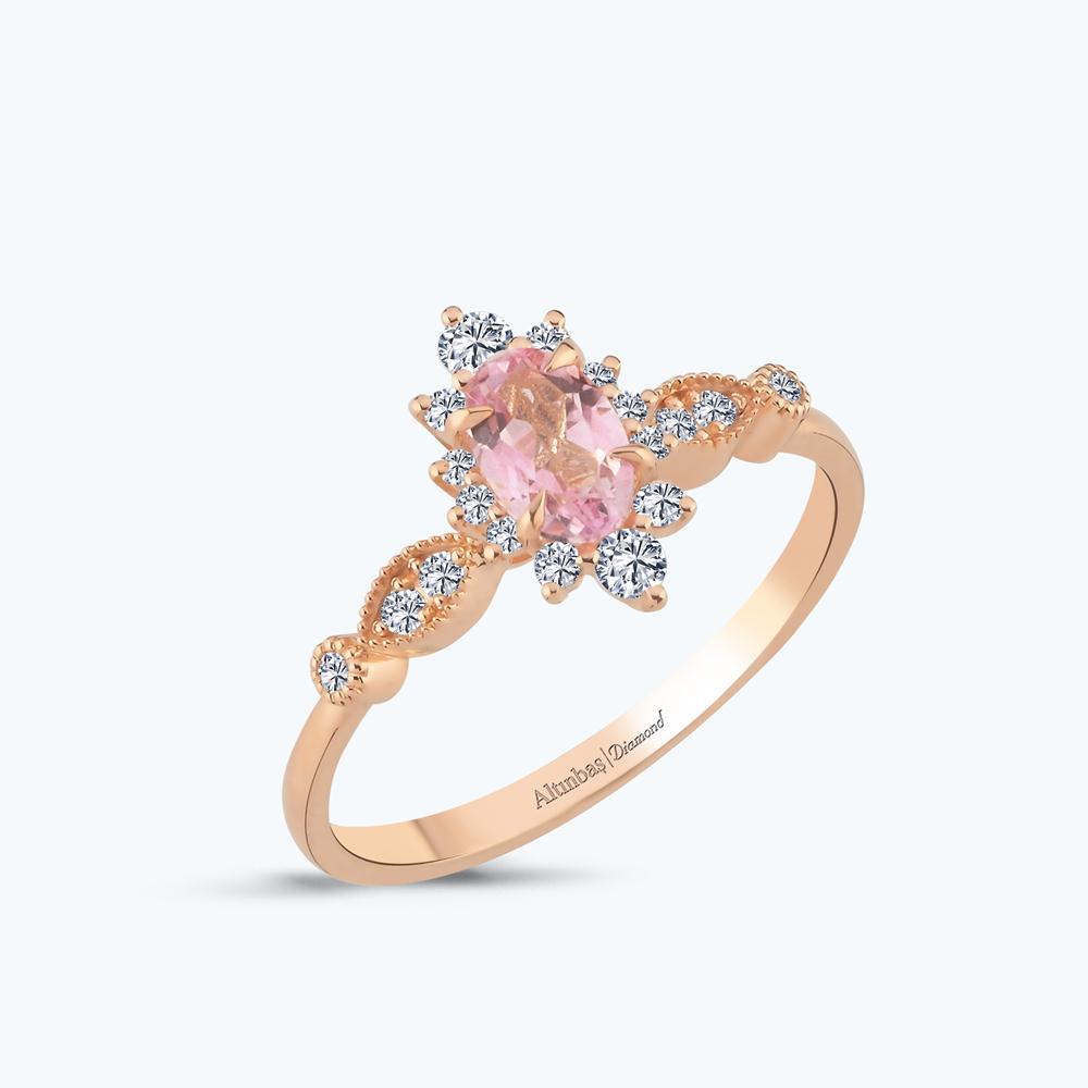 0.20 Karat Pırlanta Pembe Safir Oval Yüzük