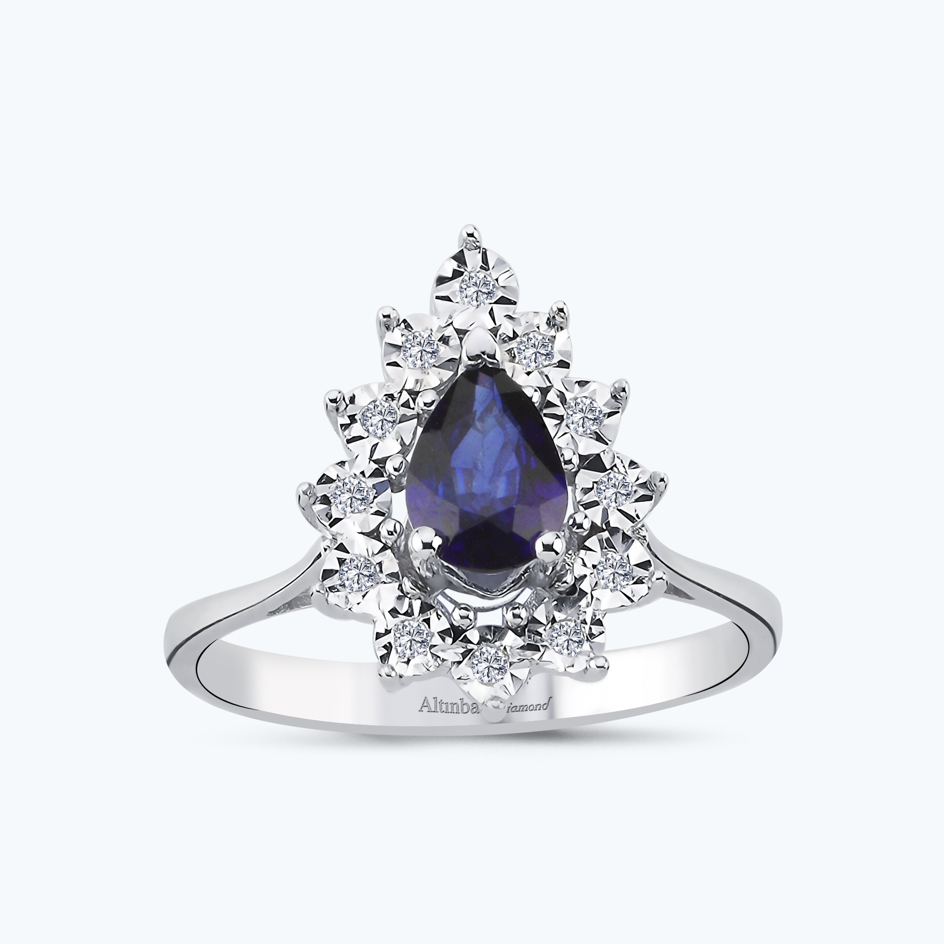 0.07 Karat Pırlanta Safir Damla Yüzük