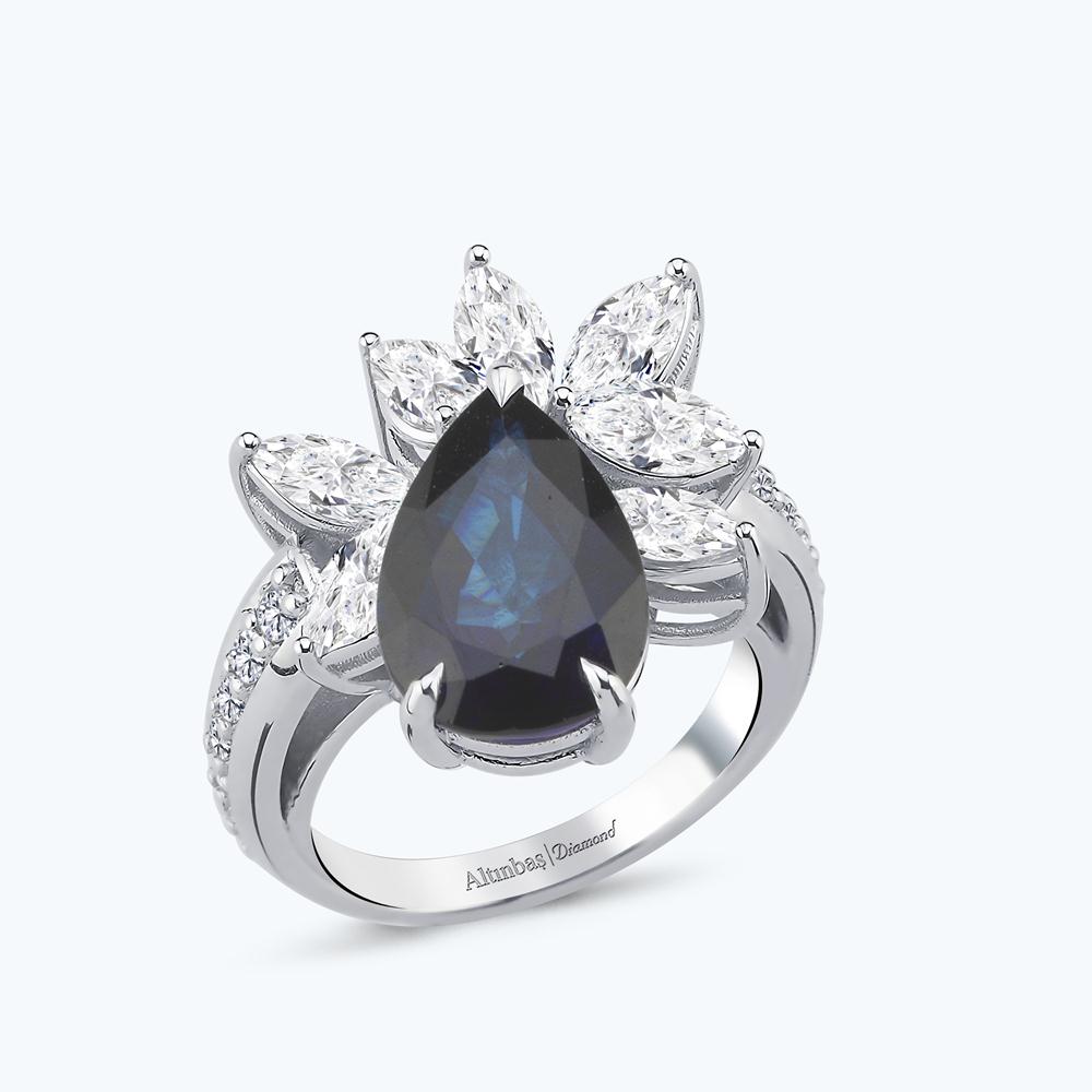 1.90 Karat Pırlanta Safir Damla Yüzük